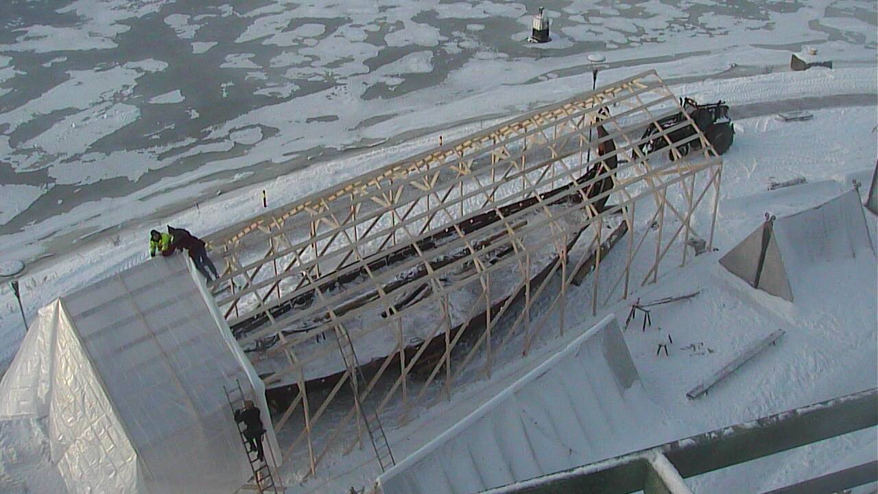 Nå skal vi dekke til vår alles dyrebare skatt, Saga Oseberg, med presenningshus.